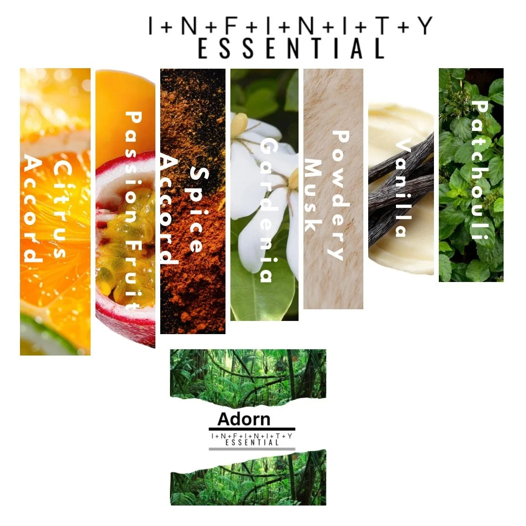 Adorn, curated for the exuberant exhibition of feminine presence, power and grace. The soft era of vulnerability and the showcase of the most beautiful qualities of one is celebrated with spiced and lush florals such as Gardenia. The uplift is present with bright citrus and grapefruits while inviting the earthy woods to center the fragrance with soft musks.